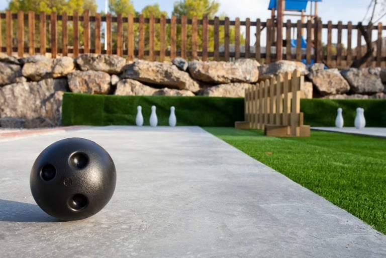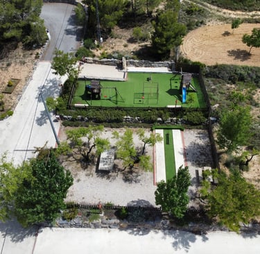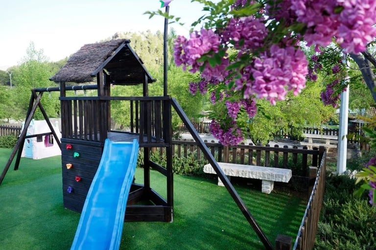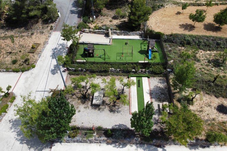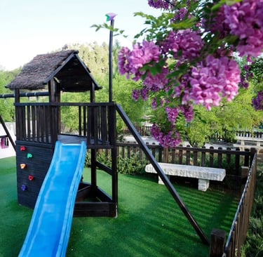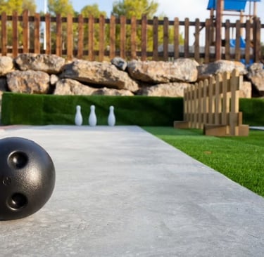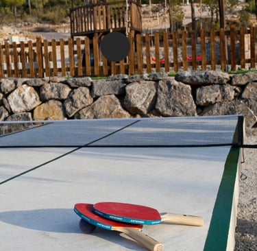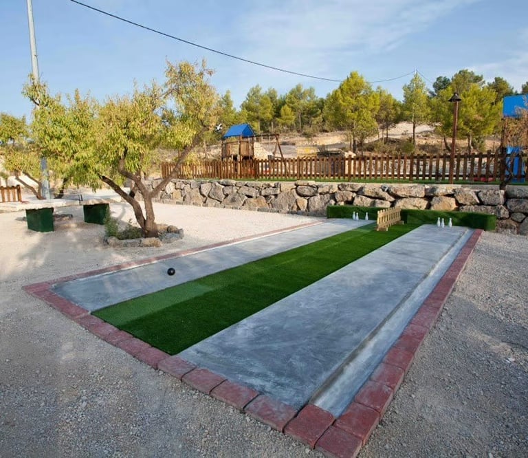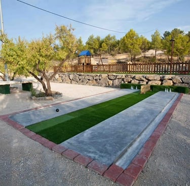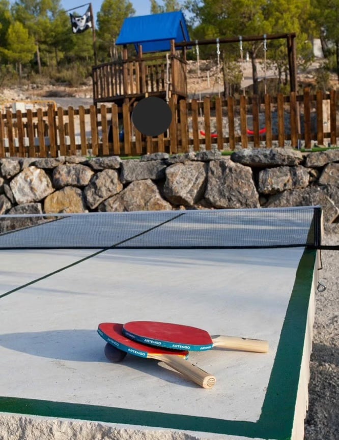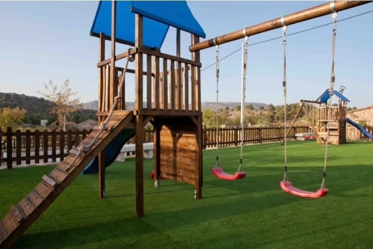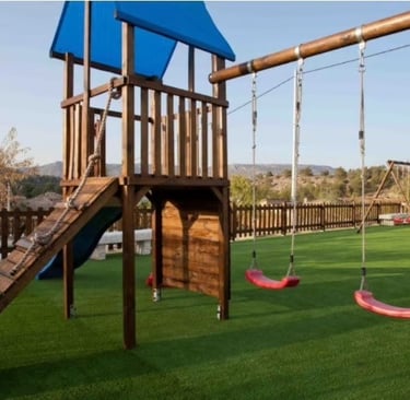 Disfruta de nuestros parques compuesto por uno infantil con torretas, columpios , toboganes , balancines, torreta escalada...etc. y otro para los no tan pequeños con 2 boleras y una mesa de ping-pong hecha en piedra natural.